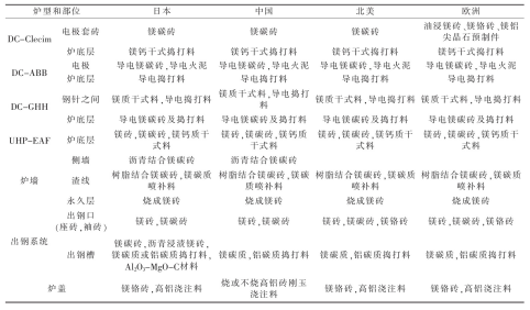 詳情摘 要:由三根電極的普通交流電弧爐發(fā)展為超高功率(UHP)及一根電極的直流(DC)電弧爐,爐體結(jié)構(gòu)有一些改變。針對(duì)各部位的損毀因素,內(nèi)襯用的耐火材料也有所發(fā)展。例如普通電弧爐的爐頂用高鋁磚、爐墻鎂磚砌筑,而UHP及DC電弧爐采用大面積水冷爐頂、爐墻,爐頂三角區(qū)采用剛玉澆注料或預(yù)制件,爐墻用鎂碳磚,蝕損嚴(yán)重部位采用噴補(bǔ)作業(yè)。還介紹了日本等一些國家DC和UHP的各種爐型用耐火材料。煉鋼電弧爐是以電極端部和爐料之間發(fā)生的電弧為熱能進(jìn)行煉鋼的設(shè)備。電弧爐以廢鋼為爐料直接煉鋼,與礦石煉鐵后再煉鋼相比,基建投資少,節(jié)能60%、節(jié)水40%、減少廢氣排放86%、減少廢渣97%[1]。交流電弧爐歷史悠久,交流電是通過三根石墨電極輸入爐內(nèi),在電極下端與金屬料之間產(chǎn)生電弧,利用電弧高溫直接加熱爐料,使煉鋼過程得以進(jìn)行。供電功率越高,爐料熔化速度越快,降低能量消耗越多,因此出現(xiàn)超高功率(UHP)電弧爐。在超高功率的基礎(chǔ)上發(fā)展了直流(DC)電弧爐煉鋼。直流電弧爐是以一根石墨電極的端點(diǎn)為陰極,爐底為陽極,石墨電極位于爐膛中心部位。與UHP相比設(shè)備結(jié)構(gòu)簡單,建設(shè)費(fèi)用低,熔池中的電流與熱量分布比較均勻,不存在過熱區(qū)域,因此耐火材料損耗比較小、節(jié)能且噪音小等。目前,煉鋼電弧爐向大型化、控制自動(dòng)化方向發(fā)展。我國的電弧爐主要用來生產(chǎn)合金鋼。煉鋼水平與工業(yè)發(fā)達(dá)國家相比差距較大,如2015年我國電爐鋼占粗鋼總產(chǎn)量的6.1%,2020年有所提高,但也不超過10%,與世界平均水平的30%相比還有較大差距。我國已經(jīng)引進(jìn)先進(jìn)水平的UHP和DC電弧爐,隨著經(jīng)濟(jì)發(fā)展,工業(yè)化程度提高,必然伴以廢鋼資源數(shù)量增加,同時(shí)發(fā)展鐵礦石直接還原煉鐵技術(shù),代替廢鋼,增加電弧爐煉鋼的爐料,還有核電的發(fā)展,使電弧爐煉鋼有了物質(zhì)保證。電弧爐的內(nèi)襯是耐火材料構(gòu)成的,隨著UHP和DC技術(shù)的發(fā)展,需要新型優(yōu)質(zhì)耐火材料與之相配套。有人說[2]:沒有優(yōu)質(zhì)爐襯、爐底耐火材料支持長壽爐齡,超高功率電弧爐就無法發(fā)揮高效生產(chǎn)的優(yōu)勢。爐底耐火材料是直流電弧爐得以實(shí)現(xiàn)的必要條件,反映了煉鋼與耐火材料技術(shù)的互相影響,互為依存,在電弧爐煉鋼系統(tǒng)優(yōu)化生產(chǎn)中有不可分割的作用。1 電弧爐的結(jié)構(gòu)變化傳統(tǒng)的電弧爐由爐頂(又稱爐蓋)、爐墻、爐坡、爐底和出鋼槽構(gòu)成,全部用耐火材料構(gòu)筑,外包鋼制爐殼。爐墻一側(cè)設(shè)有爐門,另一側(cè)為出鋼口,并與出鋼槽相連。而UHP和DC電弧爐采用偏心爐底出鋼,使?fàn)t體由傾動(dòng)式改為固定式,爐底有供氣攪拌設(shè)置,爐頂安裝氧-燃料燒嘴,在爐底偏心位置設(shè)置出鋼口,代替出鋼槽。由于取消了傾動(dòng)設(shè)備,擴(kuò)大了水冷面積,緩和了爐襯的損毀,適當(dāng)降低了出鋼溫度,并縮短了出鋼時(shí)間,從而降低生產(chǎn)成本。爐墻采用鑲砌水冷箱式水冷套措施,其內(nèi)表面噴涂一層耐火涂料,使其掛渣形成保護(hù)層,可有效降低耐火材料消耗,但電耗可能增加。國外有的電弧爐功率達(dá)1 000 kV·A/t以上,爐墻壽命達(dá)2 000爐次以上,水冷爐蓋壽命達(dá)4 000爐次,降低耐火材料消耗60%以上。2 耐火材料內(nèi)襯的損毀因素電弧爐內(nèi)襯的耐火材料長期處于高溫、熔渣侵蝕和急熱急冷狀態(tài)下,工作條件極其惡劣。在煉鋼的熔化期和氧化期,不致于因高溫?fù)p壞爐襯,但在還原期的鋼液溫度相當(dāng)高,又受電弧直接輻射(有時(shí)溫度達(dá)4 000℃以上),爐襯很容易造成熔融損壞。出完鋼裝料時(shí),爐襯溫度突然下降,裝完料開始送電,溫度又逐漸升高,這種急冷急熱是爐襯剝落的直接原因,主要是爐頂容易剝落。耐火材料內(nèi)襯損毀的主要因素包括[3]:(1)化學(xué)侵蝕。FeO或渣中SiO2與耐火材料中的CaO、MgO之間的化學(xué)反應(yīng),使?fàn)t襯變?yōu)槿墼鴮?dǎo)致?lián)p毀。(2)耐火材料內(nèi)襯中的碳成分被含氧成分(如FeO、O2、MgO等)氧化,導(dǎo)致耐火材料脫碳而損毀。(3)沖刷和機(jī)械沖擊。鋼水或熔渣流過耐火材料表面,以物理性磨損或沖刷爐襯,而導(dǎo)致內(nèi)襯損毀;在出鋼口、渣線、電極口或排氣口平臺(tái)等沖刷嚴(yán)重,廢鋼等爐料吊入往往撞擊爐襯而損毀。(4)水化。在生產(chǎn)過程中,往往會(huì)出現(xiàn)爐頂或爐墻漏水或滲水,還有水蒸氣,與堿性耐火材料中的MgO、CaO進(jìn)行水化反應(yīng),使內(nèi)襯損毀。3 電弧爐用耐火材料根據(jù)電弧爐的結(jié)構(gòu),由于各部位承受的熱負(fù)荷大小不同,與熔渣、鋼水接觸作用及機(jī)械損壞程度存在差異,不同部位必須采用不同的耐火材料[4]。3.1 爐頂(蓋)我國中小電弧爐普遍采用燒成或不燒高鋁磚,局部用高鋁質(zhì)或剛玉質(zhì)不定形耐火材料預(yù)制件。大型超高功率電弧爐和直流電弧爐采用水冷技術(shù),除三角區(qū)外,爐頂耐火材料不是關(guān)鍵。三角區(qū)由于強(qiáng)烈熱震及電極熱輻射苛刻,國外普遍采用剛玉質(zhì)或鋁鉻質(zhì)搗打料,我國一般用高鋁質(zhì)或剛玉質(zhì)搗打料。天津鋼管集